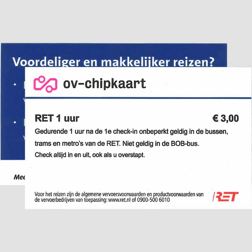 Ticket de 1 hora para los servicios de RET (bus, tram y metro).